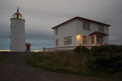 Phare et maison de gardien sur une côte au crépuscule