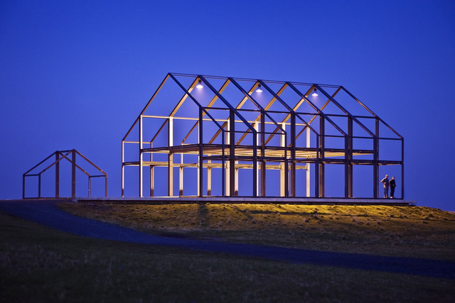 Mots-clés : acier, architecture, bleu, cadre, ciel, construction, crépuscule, deux personnes, eclairage, extérieur, illuminée, installation, métallique, minimaliste, moderne, nuit, paysage, silhouettes, soirée, structure