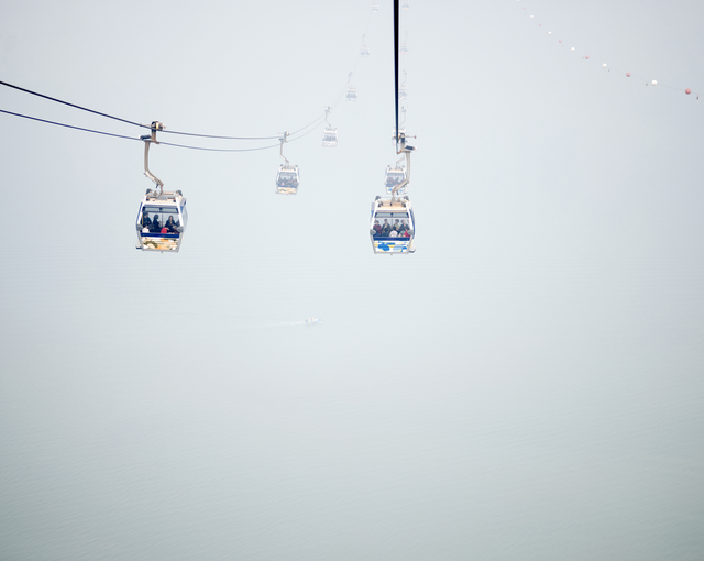Téléphérique sur fond brumeux