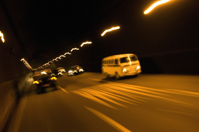 Trafic nocturne dans un tunnel urbain