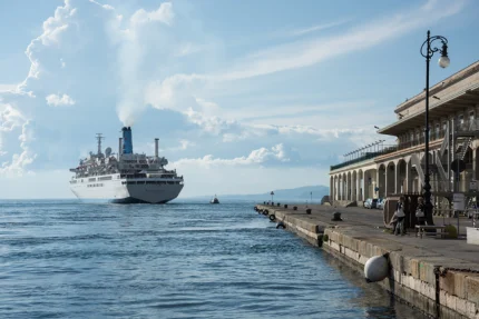 Bateau amarré dans le port avec maisons en arrière-plan