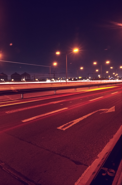 Autoroute nocturne illuminée par des lampadaires