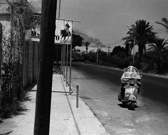 Vespa garée sur une route déserte en bordure de trottoir