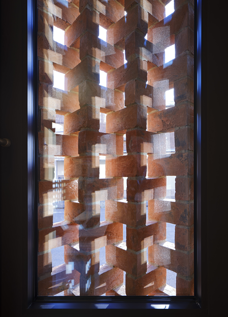 Vue à travers une cloison en briques ajourée