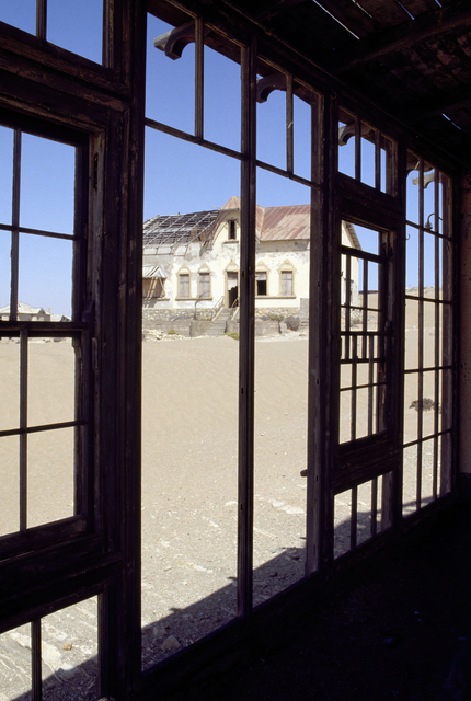 Maison abandonnée vue à travers une fenêtre