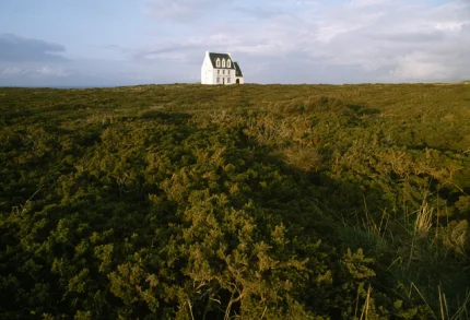 Maison isolée au milieu de vastes landes verdoyantes