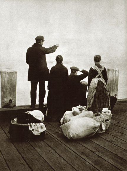 Immigrants observant l’horizon depuis un quai