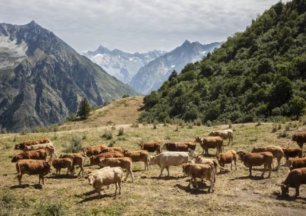 Groupe de vaches paissant dans les montagnes