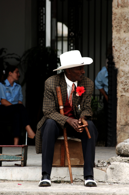 Homme âgé avec canne et chapeau à large bord